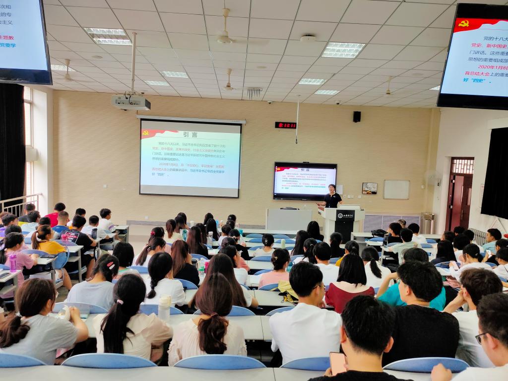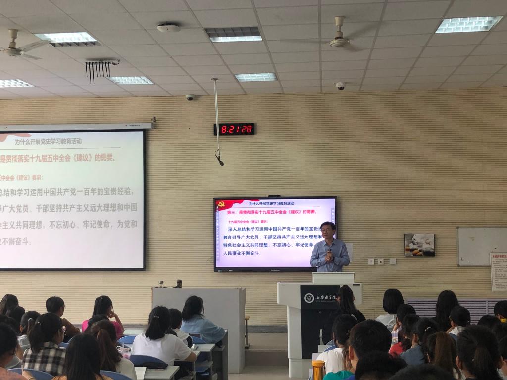 为充分发挥思想政治理论课作为立德树人关键课程的作用,落实校领导讲授思政课常态化机制,推动党史学习教育走深走实,我校全体校领导走进形势与政策课堂,深入学生开展题为“中国共产党为什么能”的党史学习教育专题教学,激励引导师生学史明理、学史增信、学史崇德、学史力行,用党的奋斗历程和伟大成就鼓舞斗志、明确方向,更加自觉从百年党史中汲取接续奋斗的磅礴力量。