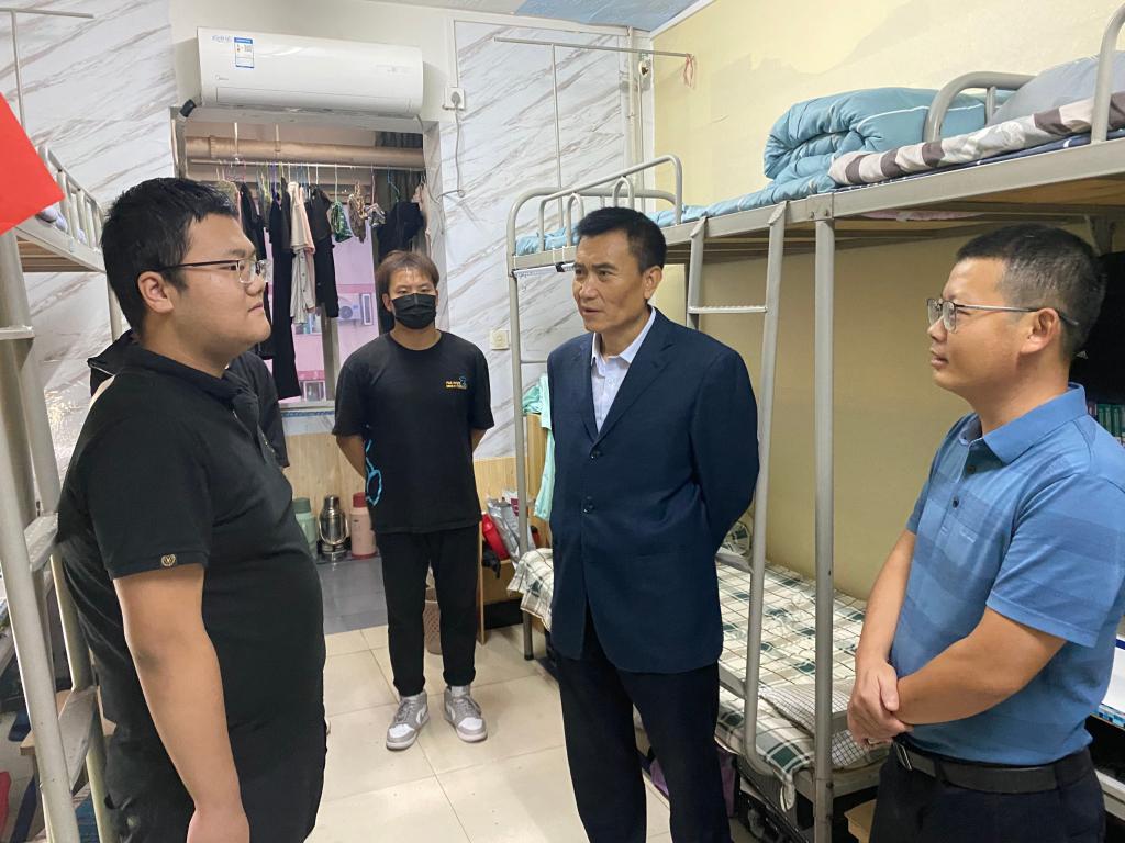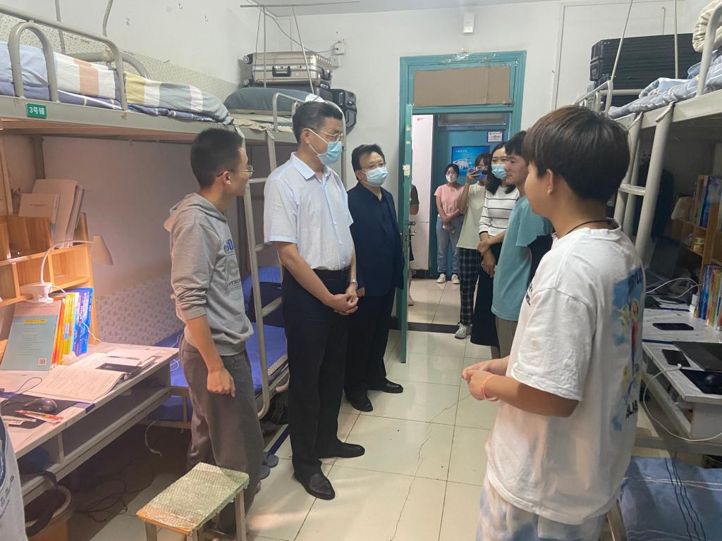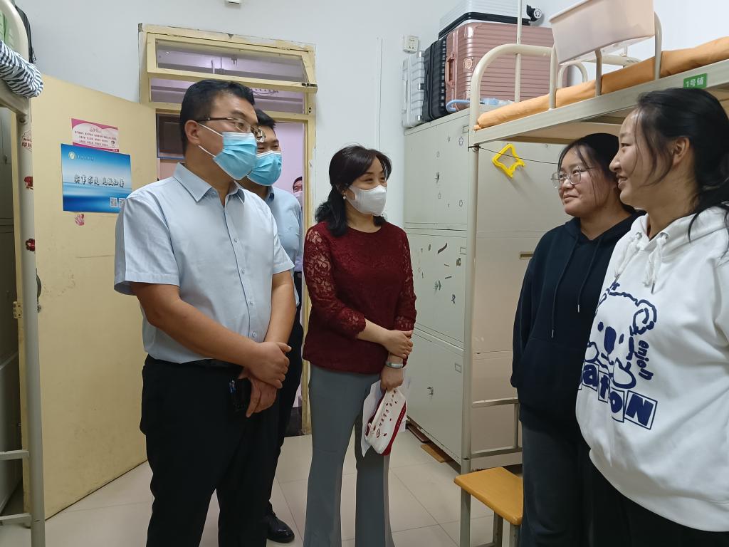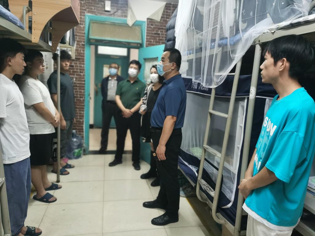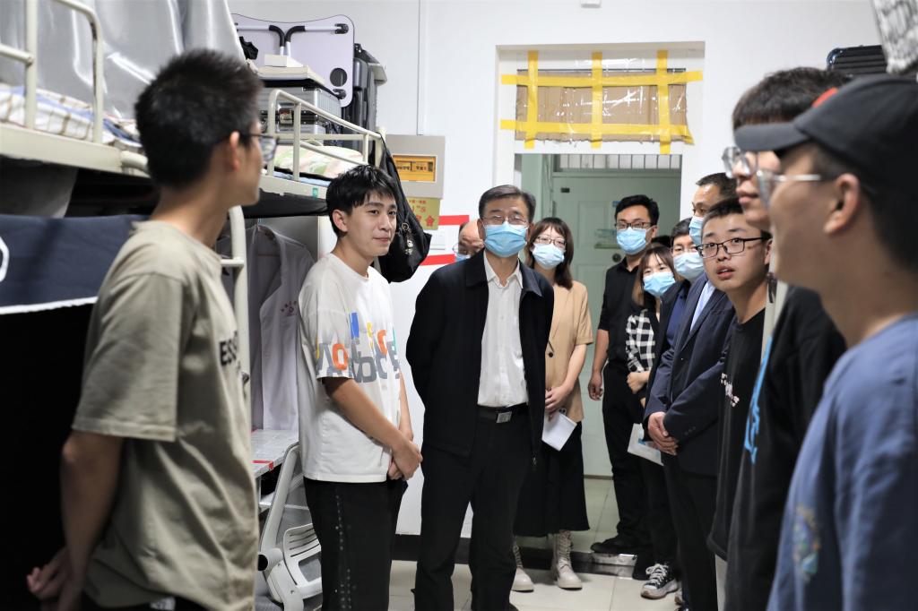 “你们家是哪里的?吃住还习惯吗?学业压力大不大?假期怎么安排?”党委委员们分别前往联系的学院公寓,深入宿舍走访看望学生并与大家亲切交谈。在走访过程中,党委书记刘岭关切地询问了同学们在校的学习生活情况和假期安排,认真倾听了大家对疫情常态化防控下校园管理、服务提出的意见与建议。刘岭表示,学校会尽最大努力为同学们提供良好的学习和生活条件,希望同学们在学习和生活中互相帮助、相互促进、共同进步,珍惜韶华、拼搏奋进,规划好大学的学习生活,真正做到学以致用。他强调,国庆假期期间学校相关领导、老师均在校值班,共同保障大家的学习、生活需求。同学们有任何问题可以及时向老师反映。同时,学校倡导同学们就地过节,非必要不离市,减少聚会聚餐,在人员密集场所全程正确佩戴口罩,做好个人防护。