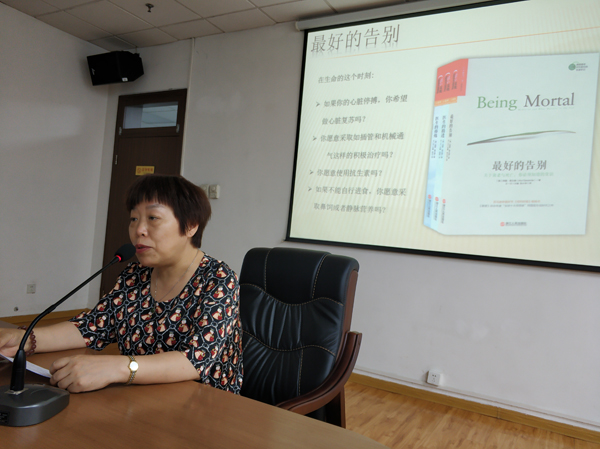 好书推介,精彩分享,作品展现,优秀点评,不一而足。舒缓的音乐响起,参加者或是结合个人读书实践,从读书明理、获取心灵滋养角度,谈自己如何从书中汲取温暖力量;或是美文朗诵,用声音将作品醇厚的思想情感内涵表达得深挚婉约,荡气回肠;或是古诗词串讲,声情并茂,娓娓道来。副院长黄保强、党委副书记、工会主席熊冬梅、副院长李雪萍均以普通教工身份,分别就红楼梦与医学研读、朱自清《背影》感悟、《最好的告别》一书的时代价值,动情、动容、动心的作了讲读。