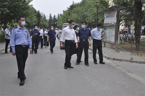 校领导在生活区查看疫情防控措施