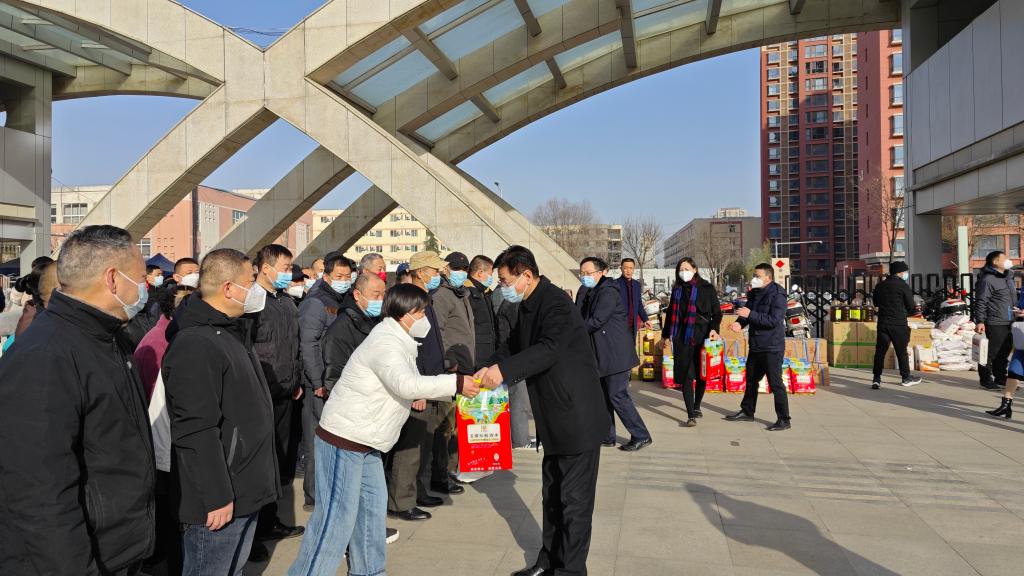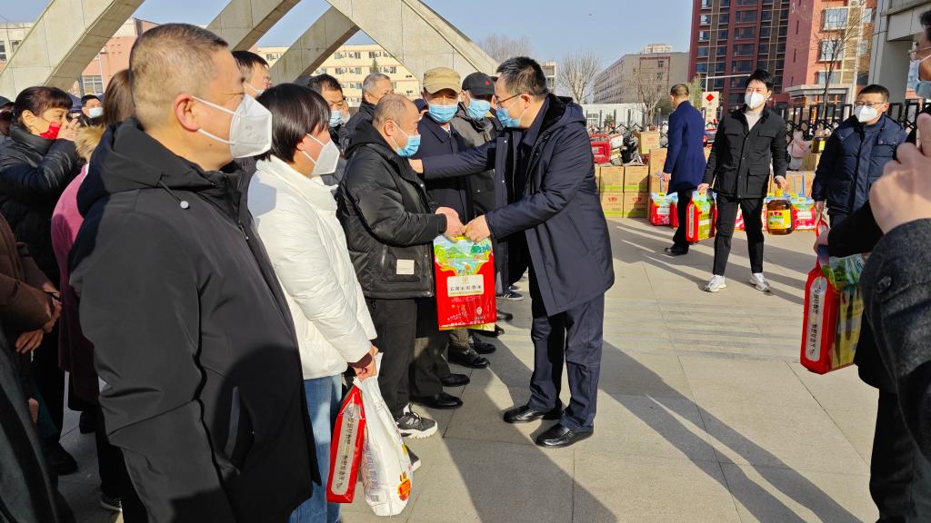 党委副书记姚文柱为未央校区值守人员发放慰问品