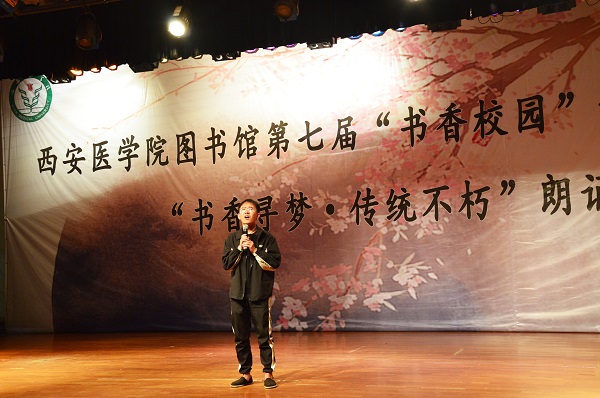 黄保强副院长专门为此次大赛致辞,他说,雅言传承文明,书籍滋养人生,希望通过此次活动营造学校浓浓的读书氛围,激发师生们的读书兴趣,在朗诵中,沐浴文化滋养,感受朗诵幸福,接受韵律启迪,提升人生境界。并在致辞的最后宣布朗诵大赛开始。