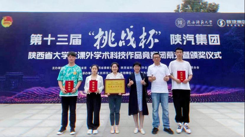 5月22日下午,由团省委、省委教育工委、省科协、省社会科学院、省学联共同主办,陕西师范大学承办的第十三届“挑战杯”陕汽集团陕西省大学生课外学术科技作品竞赛闭幕式暨颁奖仪式在陕西师范大学终南音乐厅举行。在各级领导的关怀下,在多部门的通力合作下,在教师团队和学生团队的共同努力下,我校在本次竞赛中斩获佳绩,取得了重大突破,获“优秀组织单位”荣誉称号,参赛作品获一等奖2项、二等奖2项、三等奖4项。副校长和新盈出席了闭幕式。此次大赛带队教师沙保勇,团委老师侯丹及获奖学生代表参加闭幕仪式。