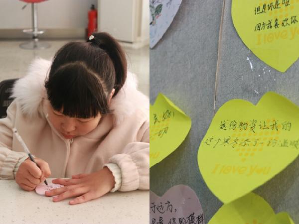点点爱心汇成暖流感染了现场所有人,受助学生将自己对学校、对国家的感谢写在一张张彩色纸片上。来自临床班的一位同学留言道:虽然我们无法选择自己的出身,但不会自暴自弃,我们把艰苦的生活当做一种磨练。十分感谢学校给予的关怀,在未来的日子里,我们将怀揣着感恩的心,自立自强、励志成才、努力实现自己的人生目标,以实际行动回馈母校,奉献社会。药学院一位同学动情的说:我一定会在大学期间好好学习,学成后尽己之力回报父母和社会,把温暖送给其他需要帮助的人。医学技术学院一位残障学生在家人的陪同下来到物资发放现场,领取物资后学生家长激动地说道:现在国家和社会对我们残障人士都非常关心和爱护,我们孩子从入学以来得到了老师和同学们热情无私的帮助和关怀,这次又在入冬之时送来这么多东西,真的是用语言无法表达我们的感谢!