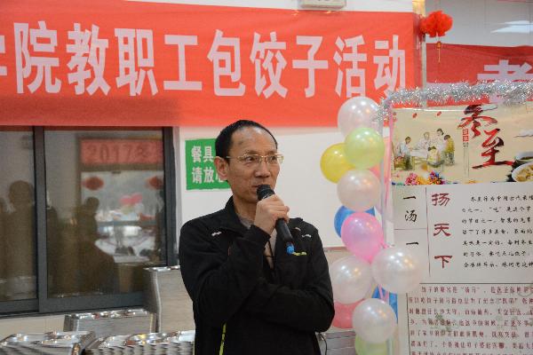 往而复始又一年,冬至时节,北方的严寒在一天天迫近,想不被冻耳朵吗?12月22日早上8:30,职工食堂已是人声鼎沸,撸起袖子,戴上围裙,握住擀面杖,手持菜刀,男男女女手舞足蹈,神色飞扬,一场全体教职工参与的大型包饺子活动马上开始。党委副书记、工会主席熊冬梅介绍了冬至的来历,说明了本次活动的准备情况,肯定了工会工作、女工工作、新近成立的职工伙食委员会工作,提出了要求和希望,9:00整,宣布活动开始。