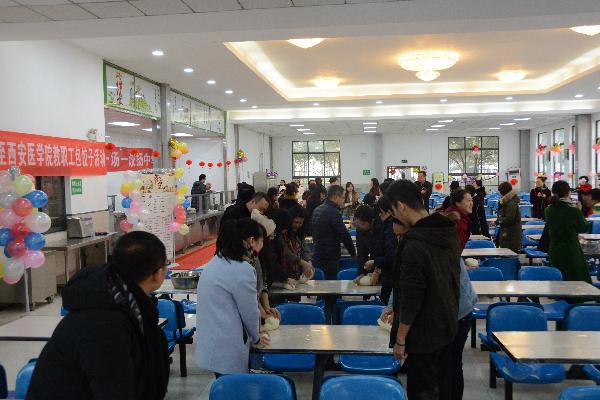 两千多年的中华文化孕育了伟大的中华文明,中华传统美食中蕴藏着中国人的求美思想和文化精神,不只是一个节气,而且不仅仅代表寒冷的到来,冬至节有着磅礴深远的历史的、自然的意义。二千五百多年前的春秋时代,已经测定了冬至,充分证明了中国人的伟大智慧。北半球白天由此渐长,包裹在我们周围的“温暖”气体将在近一个月时间逐渐被寒气驱离,这时就需要抱团取暖,职工们有这样的期待,学校这个特大家庭因此而和和美美,其乐融融。考虑到职工灶可能无法同时满足600余名职工的饺子宴,校工会精心策划,药学院、临床医学院、护理学院、医技、卫管、口腔、图书馆、校医院、高新校区各自作为活动场所。工作平台上的图片说明了一切。红皮、绿皮、两色皮、三色皮;菱状、圆柱状、方形、带花瓣形;韭菜鸡蛋、萝卜大肉、茴香、牛羊肉;酸汤、干蘸、两搅……。语言无法穷尽地美味陆续上演,团结和谐的力量由此展现,饱了不只是口福,是眼、耳、鼻共同的享受。