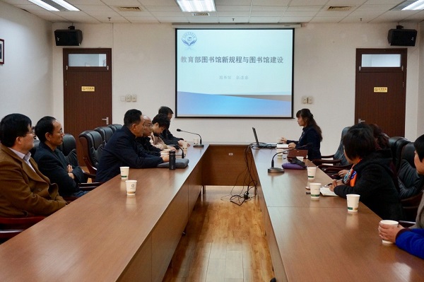 在副院长黄保强向与会人员介绍了本次研讨会的初衷及目的后,图书馆副馆长张湛睿作了题为《图书馆新规程与图书馆建设》的报告。她分别从资源、服务、管理和队伍等四个方面介绍了图书馆新规程。针对图书馆未来发展,她提出了空间改造、部署RFID系统和创新服务形式等三个方面的建设思路和规划。