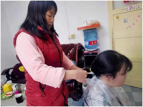 熊礼浍(右)母亲为其剪去长发