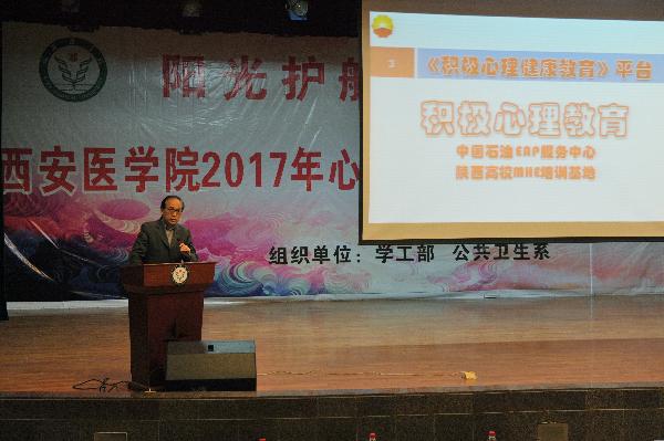 (学工部)2017年4月11日下午,我校以“阳光护航生命绽放”为主题的心理健康教育宣传季启动仪式在学术报告厅举行。校党委副书记熊冬梅,西安石油大学心理中心主任、陕西省普通高校心理健康教育培训与研修基地负责人郑林科教授,学工部部长靳红樱,公共卫生系主任石明娟,学工部副部长、团委书记王燕,及各院系党总支书记,学生管理科科长,辅导员及学生代表参加了启动仪式。