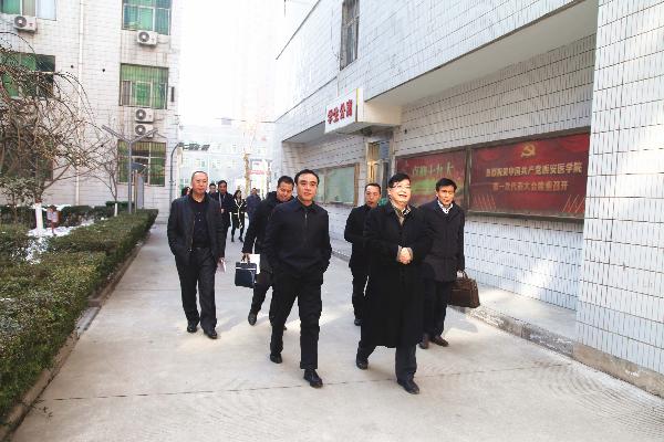 2018年1月11日上午,我校党委书记范兵、院长杨帆、副院长张越林一行到高新校区进行调研,党政办主任李庆民、基建处处长马俊生陪同。