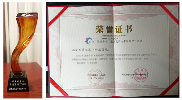 “星耀中华·最具成长力中国医院TOP10”奖杯与荣誉证书