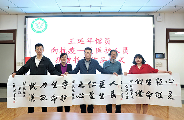 5月8日上午,党委统战部在图书馆一楼会议室举行了“王延年馆员向抗疫一线医护人员捐赠书法作品仪式”。