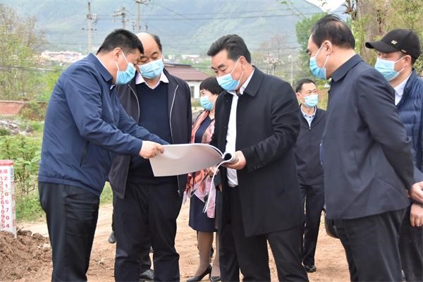 陕西省委教育工委副书记、省教育厅厅长刘建林(右二)实地踏勘褒河医养项目产业园中的汉中实训基地