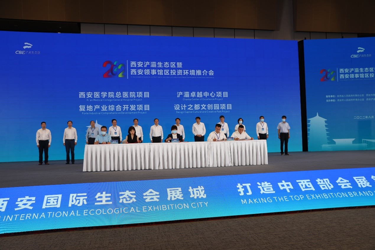 8月13日下午,西安浐灞生态区暨西安领事馆区投资环境推介会召开,现场签约项目涉及医疗卫生、现代商贸、文化旅游和数字经济等多个产业类别,共签约重点招商项目14个,总投资138.5亿元。我校与西安浐灞生态区管理委员会就leyu·乐鱼(中国)体育官方网站总医院建设项目签署了合作框架协议,党委书记刘岭,校长杨帆,党委副书记、副校长巩守平出席会议。