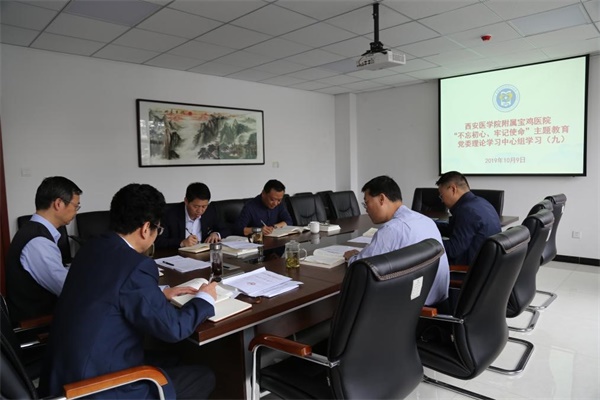 附属宝鸡医院处级干部“不忘初心、牢记使命”主题教育第九次党委理论学习中心组学习现场