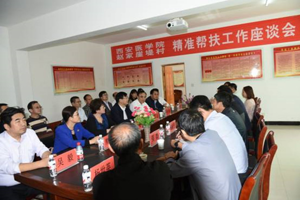 在扶贫工作座谈会上,赵家崖堤村书记杨世英详细介绍了本村整体情况和贫困户情况。校党委书记范兵向全村贫困百姓致以亲切问候。他强调,子长县是革命老区,关心支持老区百姓生活,搞好精准扶贫工作是我校义不容辞的责任。针对村里的实际困难,他指出,学校会充分发挥行业优势,在医疗救助方面竭尽所能,大力支持我校第二附属医院与当地乡镇医院的结对帮扶活动;学校还会充分协调高校资源,在全村农业生产、经济发展方面聘请专家提供智力支持。学校还将与县、乡、村一道共同改建好村自来水工程,让村民喝上干净水。他期望,全村组织建设、精神文化建设要与扶贫工作同步开展,不断提高村民精神文化生活水平。子长县副县长李茂胜在发言中表示,学校领导对扶贫工作的高度重视是赵家崖堤村村民的福音,县上也将尽可能全力配合,给予该村政策倾斜,帮助其完善基础设施建设,走出一条可持续发展的长效产业路子,两方共同努力使赵家崖堤村成为全县脱贫攻坚的旗帜。(党委宣传部 文/图 安玮娜)
