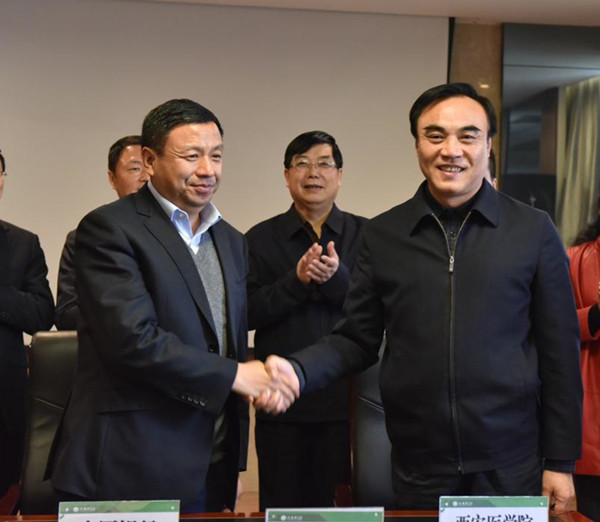 党委书记范兵代表我校师生向出席仪式的领导和嘉宾表示诚挚的欢迎,他充分肯定了中国银行与我校在银校合作历史上所取得的显著成效。他表示,中国银行陕西省分行长期以来经营稳健,管理规范、服务优良,效益良好,在省内金融机构中居于领先地位,多年的合作历史也得到了校内师生的广泛认可。本次签约,将会进一步拓展双方行业优势,在我校数字化校园建设、账户结算与现金管理、教育教学和科学研究、国家助学贷款和学生综合服务等多个方面实现有机结合,为我校“一流学院”建设和改革发展注入新的动力,也为新时代国家战略特别是“健康中国”战略、“精准扶贫”战略提供强大助力。