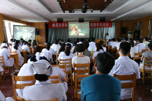 (附属宝鸡医院)6月24日,由我校附属宝鸡医院主办的“股骨头坏死相关研究及治疗进展”学术讲座在医院六楼多功能厅隆重举行,讲座共吸引了宝鸡及周边地区100余名医务人员参加。附属宝鸡医院特邀大连大学附属中山医院院长赵德伟教授进行学术讲座,并进行了双侧股骨头坏死,右侧髓芯减压左侧带血运骨瓣植入术,手术通过附属宝鸡医院的视频直播系统向全体参会人员进行了现场直播。