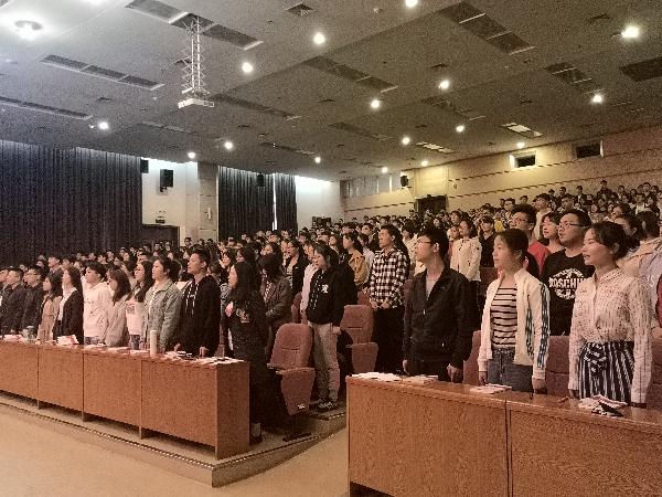 开学典礼在庄严的国歌声中开始,全体师生齐声唱响国歌。郭卫党宣读了党课安排和党校纪律要求,并代表党委组织部作了热情洋溢的动员。他对本学期813名入党积极分子表示热烈欢迎,对大家积极要求进步的思想和行为表示肯定和赞赏;同时他从三个方面作了简要动员:一是作为当代大学生和社会主义事业的接班人,要心怀梦想;二是作为当代大学生,要通过努力奋斗去实现自己的人生梦想;三是参加党课学习是当代大学生实现人生梦想的重要开端。最后,他希望每一位同学都能珍惜这次学习的机会,按时参加党课学习,认真学习掌握党的知识,在思想上和行动上积极向党组织靠拢,真正做到思想和组织同时入党,早日加入到中国共产党这个光荣伟大的组织之中。(党委组织部 文/袁欣 图/薛羿冰)