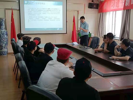 会上,高新校区管理处副处长王军带领大家学习《学校食堂食品安全管理》,就餐厅食品采购验收、储存、烹调加工等风险控制要点做了详细的讲解和说明,要求相关工作人员继续强化食品安全意识和责任意识,严把食品采购进货关、食品验收贮存关、食品加工关、食品留样关、食堂卫生保洁关、食品添加剂使用关、从业人员健康卫生关。王军指出,今年6月是第20个全国“安全生产月”,各工作人员要围绕“落实安全责任,推动安全发展”的活动主题,高度重视校区餐厅管理工作,提高政治站位,强化责任,齐抓共管,确保校区食堂食品安全管理工作机制真正落实到位 。