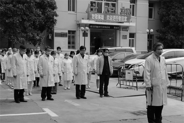 第一附属医院门诊部刘思谈到:今天向抗疫牺牲的烈士和逝去的同胞默哀,感到很悲伤,也由衷地敬仰和尊重,是他们的牺牲和仍然坚守在一线的医护工作人员的奉献,让国内疫情防控形势持续向好。作为一名医护人员,在当前疫情防控的关键时期,将铭记烈士们的光辉事迹,继续奋战在前,努力为广大患者提供优质高效的医疗服务。