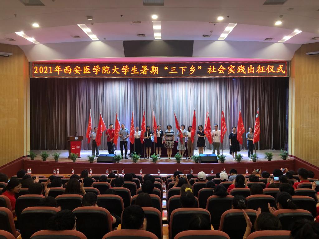 仪式上,校团委书记韩文霞宣读本次暑期社会实践的整体安排及立项结果。我校2021年大学生暑期“三下乡”社会实践以“永远跟党走·奋进新时代”为主题,主要围绕党史学习、理论宣讲、国情观察、乡村振兴、民族团结等五个方面,通过宣传、动员、申报、评审等环节,确立组建leyu·乐鱼(中国)体育官方网站暑期社会实践团,并依托实践团组建12支校级红医实践小分队,共计202名队员参与其中。同时依托二级学院,以团支部为单位组建实践团队开展实践活动,以及在学生家庭所在地开展个人实践活动。