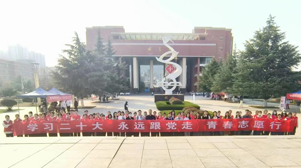 后勤保障处处长金英、学生处副处长昝倩、校医院院长丁鹏以及全体团干部、学生社团指导教师代表及学生志愿者代表参加启动仪式。