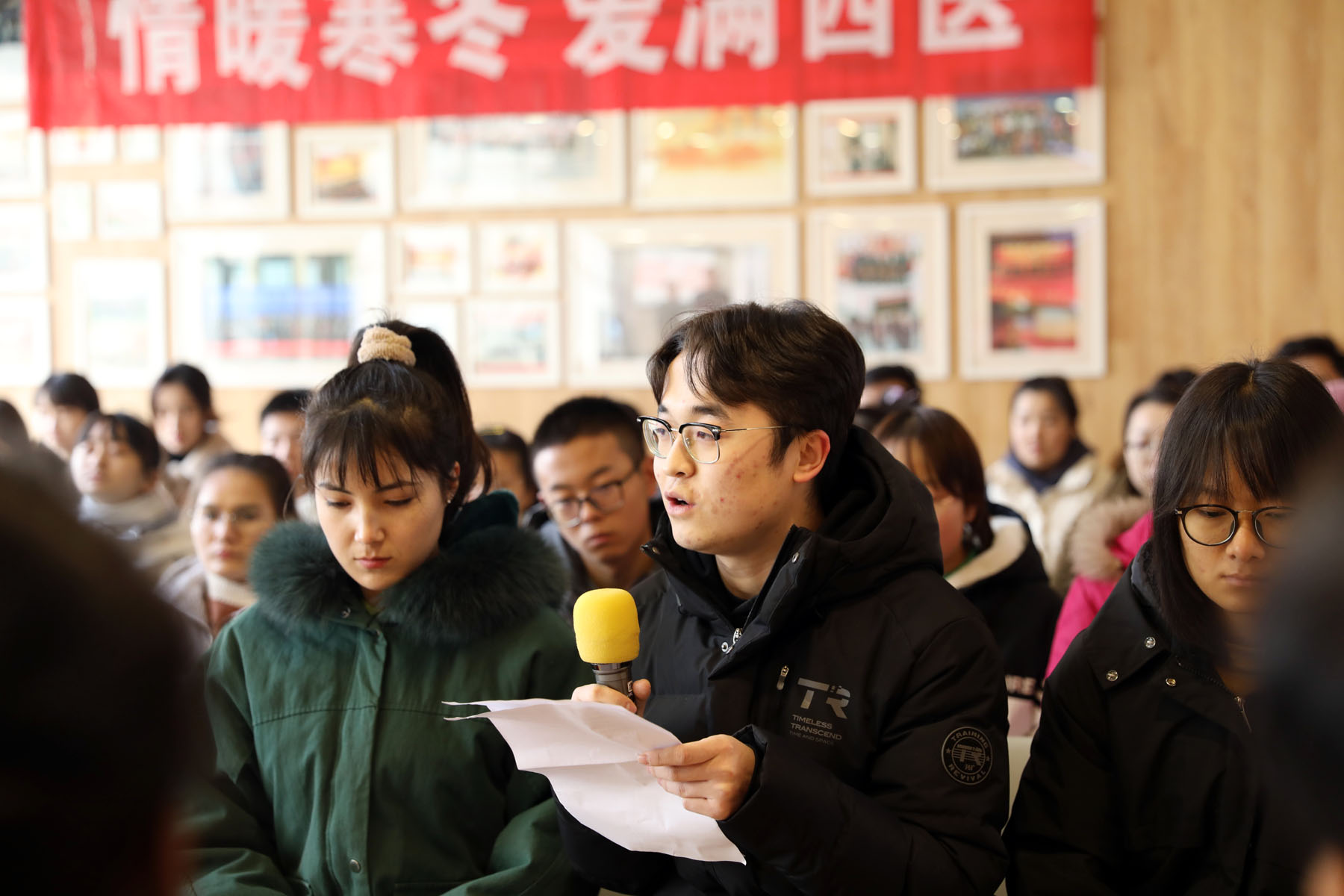校党委副书记熊冬梅代表学校党政领导为同学们送去了问候,并与同学们亲切交流。她指出,冬季送温暖活动是我校资助工作的传统项目,已持续开展多年。一份份暖心物品不仅是对同学们物质上的帮助,更是对同学们精神上的鼓舞。她希望同学们要心怀梦想,坚定中国梦、西医梦;要心怀感恩,将爱国心、报国情、强国志落实到行动中;要传播爱心,让西医变成一个充满爱的大家庭。并对学生资助工作提出进一步要求,希望学工同仁走进学生,倾听学生心声,将扶贫、扶志、扶智相结合,育德、育心、育人相结合。最后,她叮嘱同学们寒冷季节保重身体,向同学们送去新年的祝福,并预祝同学们在期末考试中取得优异成绩。(学工部 文/柏璐 图/张建基 审核/昝倩)