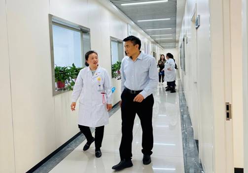 随后,张杰简要介绍医院发展现状和我校学生在医院的实习情况,并对我校的人才培养模式和实习生表现非常认可。田玉梅根据医院科研现状,提出了合作需求,期望依托我校科研平台进一步加强合作,强强联合,共同提高实习生对所学专业的认可,提高就业质量。最后,校企双方参会人员就学生培养、岗位拓展等方面作了进一步交流,并一同参观了医院科研实验室、药物评价中心等用人实践场所。