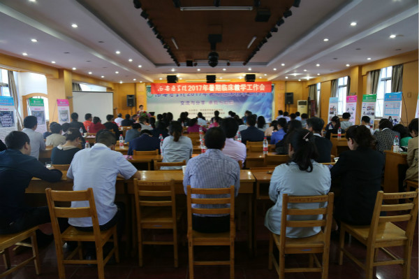 (附属宝鸡医院)8月29日,由临床医学院主办、附属宝鸡医院承办的我校2017年暑期临床教学工作会在附属宝鸡医院召开。会议以“交流与分享 承前与启后”为主题,围绕“分享往届临床技能大赛经验,启动下届技能大赛工作”展开,教务处、临床医学院、第一附属医院、第二附属医院等单位的领导、教师、教学督导及附属宝鸡医院领导班子全体成员、教学管理部门、各教研室主任、教学骨干100余人参加了会议。会议由临床医学院院长王惠民主持,弥曼副院长出席会议并作重要讲话。