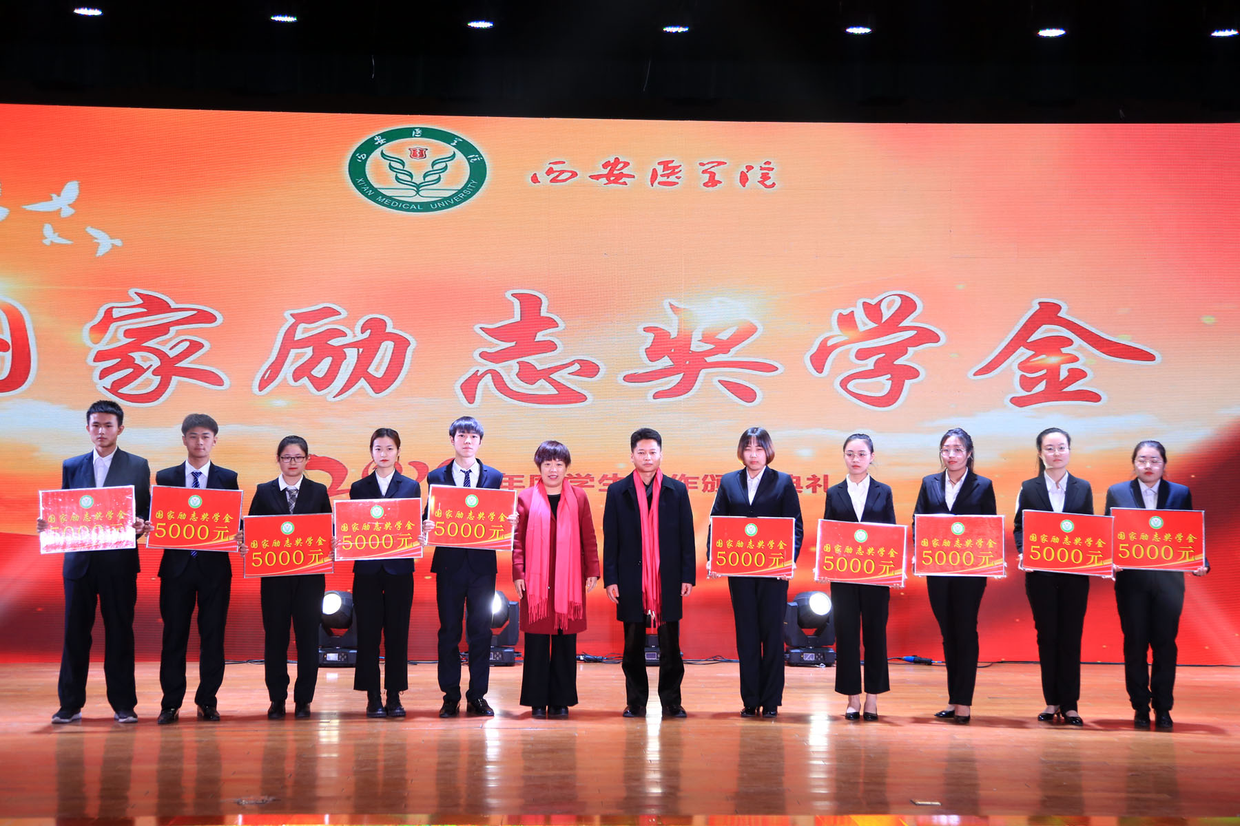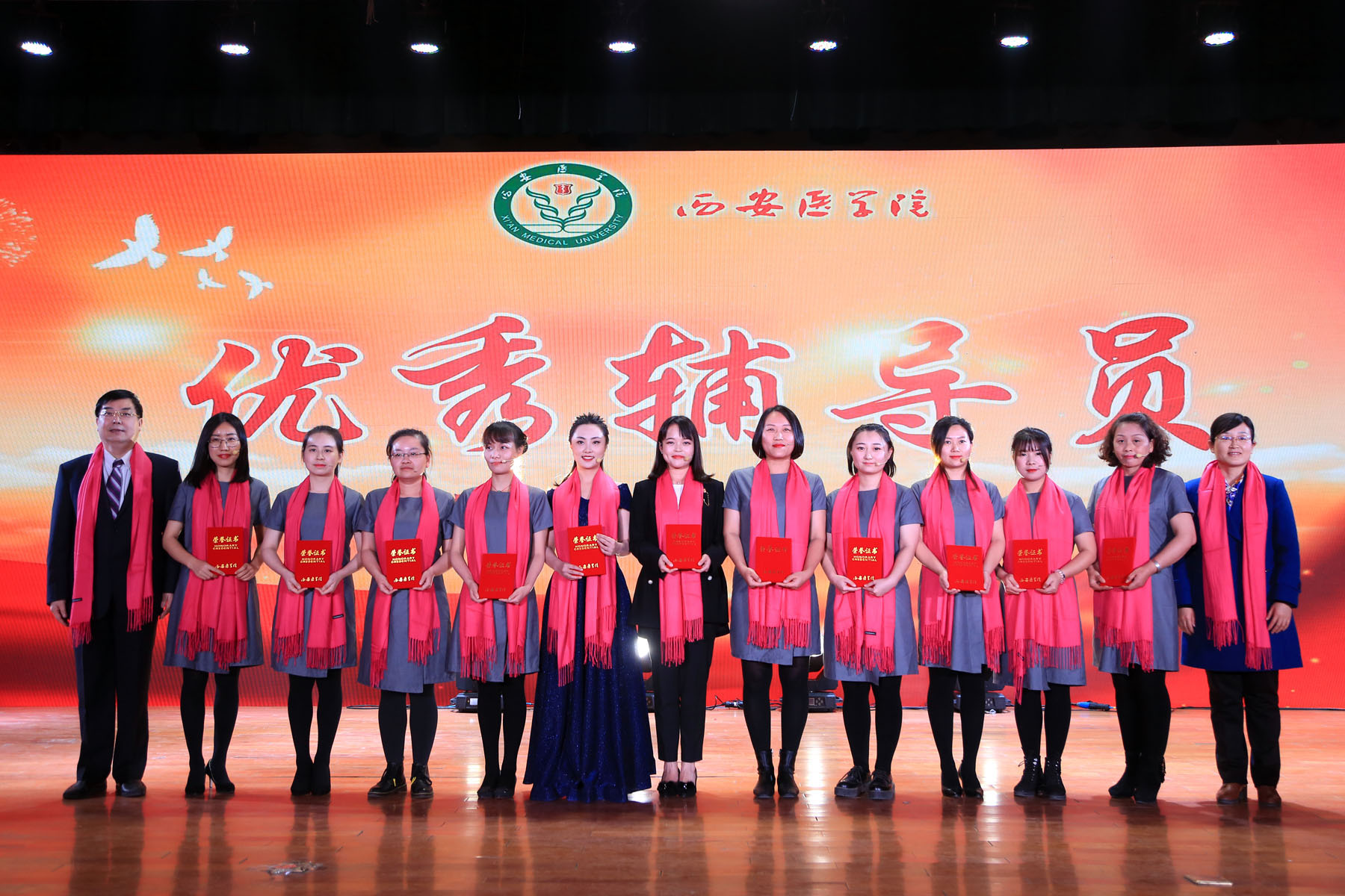 为表彰先进,树立典型,进一步调动广大学生奋发向上、刻苦学习的积极性,促进学生工作队伍积极进取、勇于创新,12月23日下午,学工部在学术报告厅隆重举行“青春榜样,医耀初心——leyu·乐鱼(中国)体育官方网站2019年学生工作颁奖典礼”。校党委书记范兵、副院长黄保强、党委副书记熊冬梅,副院长李雪萍、张越林、姚文柱,陕西省教育厅资助事务中心副处级调研员胡惠群出席了本次颁奖典礼。校党委组织部、宣传部,教务处、保卫处、后勤保障处及校团委等职能部门负责人,各二级学院党总支书记、副书记及马克思主义学院院长,各学院学生科长、团总支书记,全体专兼职辅导员及学生代表四百余人参加了本次活动。