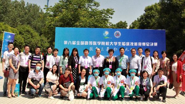 本次我校代表队由弥曼副院长挂帅,第二附属医院王建榜院长任领队,临床医学院、第一、二附属医院均选派竞赛督导、指导教师、教学骨干随队临场指导与观摩学习。本届竞赛赛场均采用仿真模拟教学模型、标准化病人、高度贴近临床真实场景,题量多、范围广、难度大、综合性强、侧重临床思维考核。我校代表队不畏强敌,顶住压力,沉着迎战,与众多“211工程”、“985工程”等知名高校选手同场竞技,最终在第八届全国大学生临床技能竞赛总决赛中荣获团体三等奖。