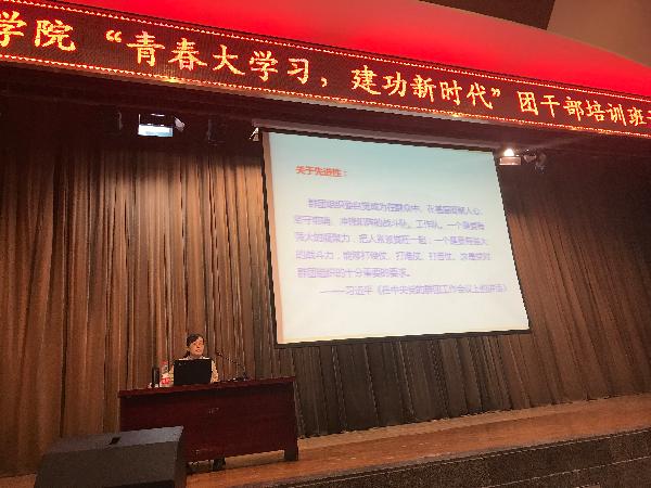 此次开班,校党委副书记熊冬梅为全体团干部讲授了以“明确角色定位 做合格团干部”为主题的团课。她从学生团干部的职责定位、团干部应具备的能力素质、优秀团干部的成长过程三个方面进行讲解。对团组织、团支部职责、团干部职责、学生干部作用,学生干部应具备的能力结构、组织领导能力、团干部工作的隐性素质等进行了详细讲述。她强调,团学干部要恪守学生本分、牢记团组织宗旨、永葆理想主义情怀、扎扎实实做事、营造平等氛围、摒弃庸俗习气,明确角色定位,做合格团干部,在实现中国梦的实践中放飞青春与梦想!