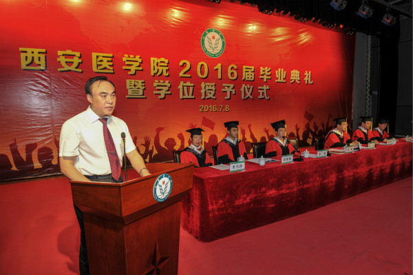 (宣传部)7月8日下午,我校在未央校区学术报告厅举行2016届毕业典礼暨学位授予仪式。2016届本科、硕士毕业生们顺利完成学业,在这里告别母校,开启人生的新征程。校党政领导、学位评定委员会委员、相关行政部门负责人、各院、系(部)负责人、教师代表、辅导员、本硕毕业生代表共计400余人出席了毕业典礼。毕业典礼由副院长弥曼主持。