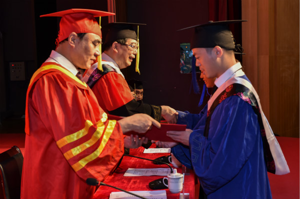 杨帆院长以“对下一段青春说你好”为主题对毕业生寄语,他以长者的口吻对同学们走出校园、走向社会,提出了几点忠告,一要不忘初衷,要时刻铭记“初衷是一种朴素而坚定的情结,是从梦想变为现实的原动力”;二要直面挫折,逆境而上,只有鼓起勇气、直面人生,才能脚踏实地的走好人生每一步;三要服务基层,基层是施展才华、逐梦圆梦的平台,充分的基层锻炼,可以具备更加完善的社会责任和职业道德意识;四要勇于实践,知识只有通过身体力行的实践才能达到人生价值充分体现的境界;五要青春无畏,大家一定要保持朝气蓬勃、活力四射、积极向上的精神,用激情去创造人生的辉煌。毕业生冯磊同学和黄一鸣同学分别代表硕士、本科毕业生发言,发言中对母校和老师表示感谢,并表示在未来的日子里,一定会不忘“厚德博学 精益求精”的校训;教师代表邱剑老师寄语毕业生,表达了对学子们的眷恋之情,希望学子心系母校,将母校的精神传承与发扬。