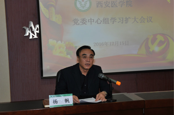 党委书记范兵对近日来校党委安排部署学习宣传贯彻全国高校思想政治工作会议情况做了简要介绍,并就如何贯彻会议精神、推进我校思想政治工作提出“四个围绕”:一是要围绕思想建设抓思政工作,把“立德树人”作为高校第一要务,教育师生永远跟党走;二是要围绕队伍建设抓思政工作,优化思政教育队伍,改进思政教育教学方法;三是要围绕学生抓思政工作,真正做到以学生为本,围绕学生、关照学生、服务学生;四是要围绕延安精神和“大医精诚”抓思政工作,以陕西地域文化和医学职业精神涵养促进师生道德素质的提高。