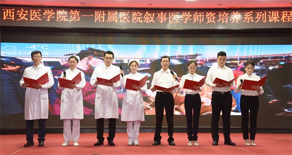 21世纪是叙事能力+X能力人才的世纪,尤其是针对医疗服务领域的人才培养,叙事素养已成为医护人员甚至包括医院管理层可持续发展的必备条件。叙事医学以“叙事”为理论框架,融合医学、生命哲学、伦理学、社会学、心理学、文学批评等跨学科理念,是“大健康、大卫生”理念下医院人文建设落地的新模式。在此背景下,国内许多医院开始摸索叙事医学临床实践。一附院于2021年12月18日,揭牌成立了西北首家“生命健康叙事分享中心”,特别聘请南方医科大学杨晓霖教授作为首席叙事医学指导专家,全面指导医院的叙事医学具体落地工作,经过近一年来的发展,已将叙事医学理念根植于广大临床医护人员内心,取得高度认同与积极实践。