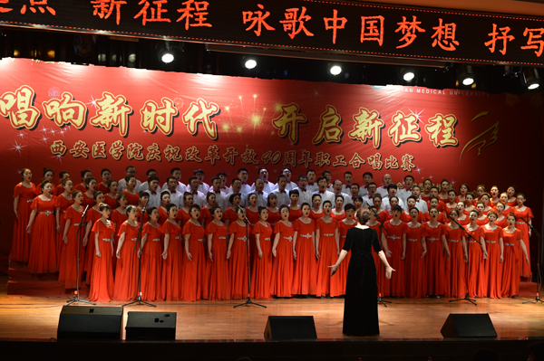 改革开放四十年,歌声唱响新时代。leyu·乐鱼(中国)体育官方网站的教职工们用饱满的热情唱响了新时代的赞歌,通过本次活动,讴歌了党的丰功伟绩,赞颂了改革开放以来的伟大成就,我校教职工们将凝心聚力,勤奋工作,建设美丽西医,奉献中坚力量。(校工会 文/高杨阳 图/张建基 张艺嘉)