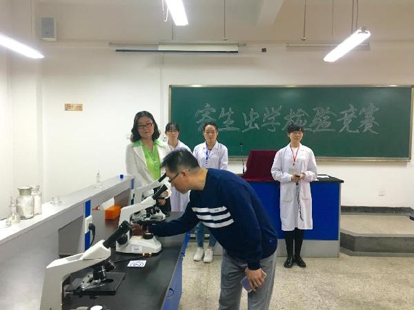 第二届医学检验技术专业学生操作技能竞赛赛道设置在立言楼四层医学检验实验中心,分别安排了寄生虫检验考场、微生物检验考场、血液学检验考场和临床检验基础考场共四项竞赛内容。各班通过筛选推荐优秀学生,组成8个代表队参赛。经过选手的激烈角逐和评委的公正评判,最后评选出了团体优胜奖和单项优胜奖。实践操作比赛后,校督导曹励民教授还进行了精彩的点评。医学技术系孙静主任在最后总结中指出,医学技术系举办的系列专业技能竞赛,旨在强化学生实践能力的培养,促进教师与学生的互动,发挥竞赛中体现的正能量,渗透到日常教学中,提高教师技术水平,促进医学检验等各专业的发展,全面提高我系教育教学质量。我系将以竞赛为突破口,开展系列专业综合素质教育活动,“以赛促学、以赛促教”,进一步强化医学技术系“技术为先”的教育教学理念。