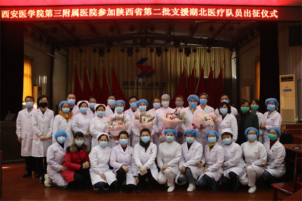 2月2日下午,陕西省第二批援鄂医疗队121位医护人员将出发前往武汉抗击疫情,这支医疗队伍中包括我校各附属医院10名医护人员,其中第一附属医院3名,第二附属医院2名,第三附属医院(陕西省友谊医院)4名,附属汉江医院1名。