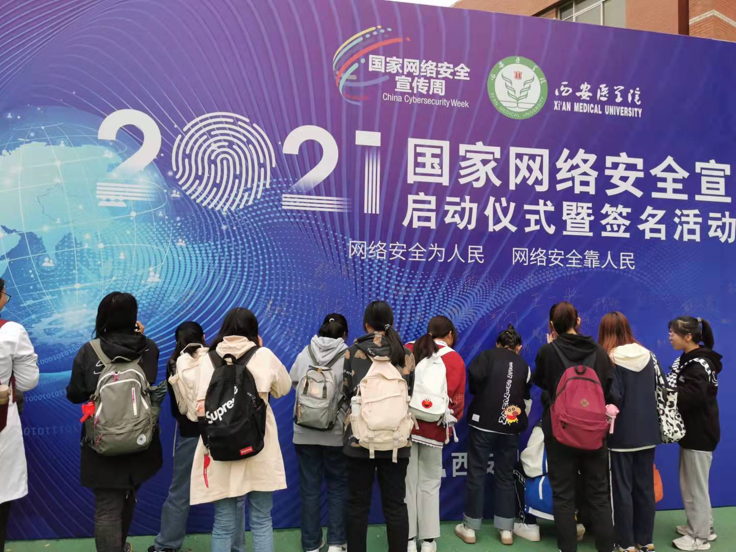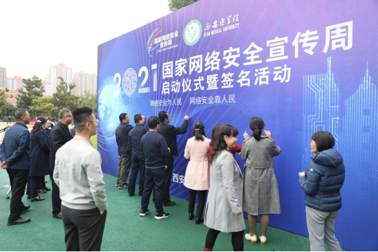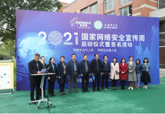 2021年10月11日上午,第八届国家网络安全宣传周在西安国际会展中心举行了启动仪式,我校在教学楼南广场同步举行了leyu·乐鱼(中国)体育官方网站第八届网络安全宣传周启动仪式。黄保强副校长,宣传部、统战部、财务处、发展规划处、学工部、研工部、校团委、国际办、保卫处、图书馆及信息技术处等部门负责人,各党总支书记,部分学生代表及信息技术处全体人员参加了活动。同时共青团中央新媒体中心的新闻工作者专程前来参加活动并进行了采访报道。