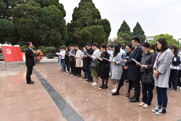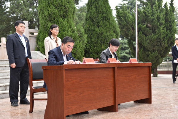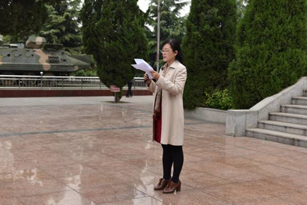 奏唱国歌、默哀、敬献花篮、鞠躬、宣誓……在庄严肃穆的纪念烈士活动后,眉县县委副书记魏建儒首先致辞,他表示签约共建实践教学基地拓展了眉县现有资源的育人功能,有助于推动眉县发展。他向我校多年来对眉县医疗卫生事业的支持表示感谢,对我校师生的到来表示欢迎。他表示,眉县将以签约挂牌仪式为契机,积极发挥实践教学点作用,全面加强实践教学基地建设,优化地域特色,丰富资源内涵,为高校思想政治教育工作和师生的党性教育再做贡献。