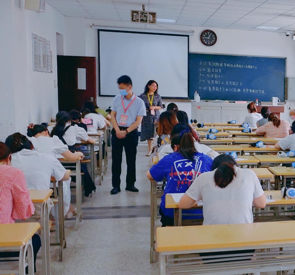 本次考试在充分考虑疫情防控及防暑的前提下,安排考场21个,其中考生使用考场13个,备用考场2个,隔离考场6个。各考场均按要求配有防疫物品口罩、消毒凝胶。为保证考试顺利进行,外国语学院在考前对所有监考教师及考务工作人员进行了培训,并提前一周对口语室的放音设备进行了调试,考前两天在口语室实行不间断试音工作。