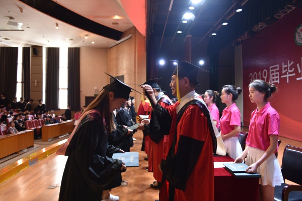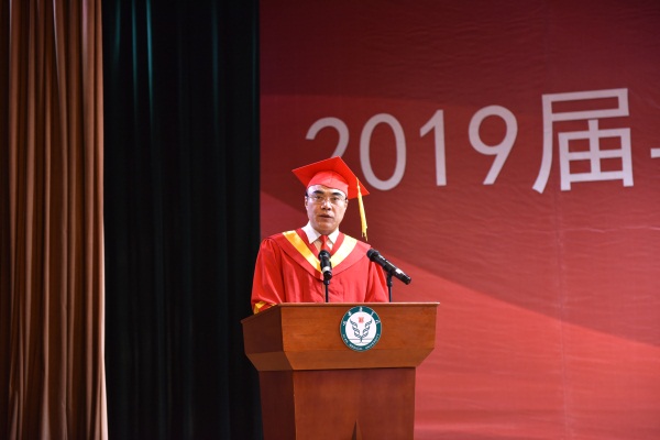 杨帆院长给2019届毕业生提出了三点希望,一是要厚德。希望同学们向王振义老先生学习,保持内心的明辨与慎独,坚持医者的正义与本真,以德修身,以德养性,履行好“悬壶济世,救死扶伤”的道义。二是要博学。希望同学们走向社会后,把读书学习作为精神追求和生活方式,让“博学”成为大家前行道路上的通行证、战胜困境迷茫的定海神针和走向人生巅峰的“锦鲤”。三是要求精。希望同学们在以后的发展道路上,牢记良医救人、庸医害人的警训,不能为一时之需降低要求,要坚定“健康中国”战略,努力干出一番不负光荣使命的医学事业!最后他祝愿2019届毕业生前程似锦、鹏程万里!