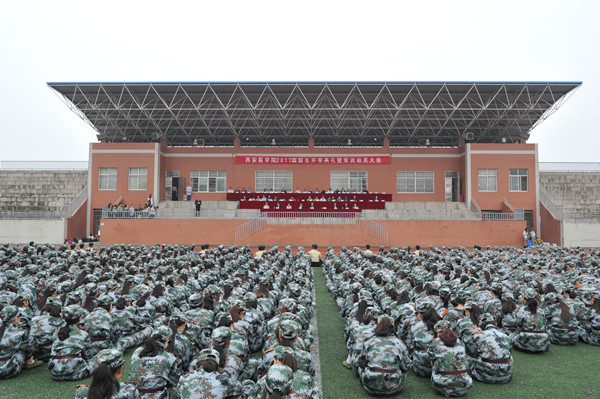 (宣传部)斗志昂扬军容肃,四海英才聚西医。9月4日上午,我校2017级新生开学典礼暨军训动员大会在未央校区体育场隆重举行。校党政领导范兵、杨帆、弥曼、黄保强、熊冬梅、李雪萍、张越林、吴毅及中国人民解放军火箭军工程大学雷霁上校、刘国帅上尉、马听听中士出席大会。学校相关党政部门负责人,各院(系、部)党总支书记、主任,leyu·乐鱼(中国)体育官方网站军训团全体教官,教师、辅导员代表,以及2017级全体硕士、本科新生参加大会。大会由党委副书记熊冬梅主持。