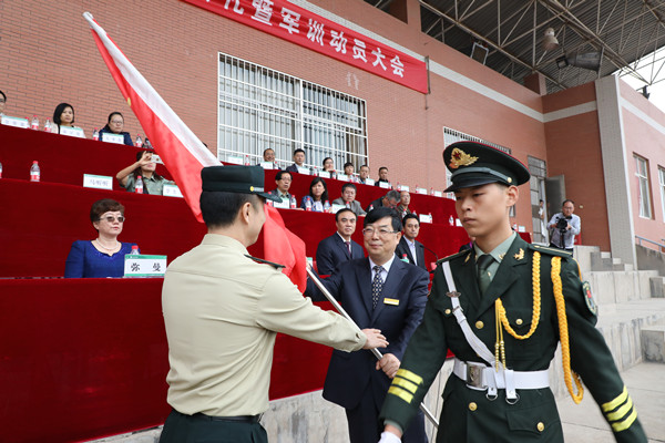基础医学部人体解剖教研室老师徐浩博士代表全校教师热烈欢迎2017级新生的到来,他鼓励新生来到大学要有独立的思想和人格,学会做人,时时告诫自己学医之路不容许丝毫怠慢。在校生代表、本科生新生代表及研究生新生代表分别进行了发言,表达了对此次军训的期待和圆满完成军训的决心。军训教官代表邵智愚表示军训团的全体教官会以兄长之情关心和爱护同学们,通过军训增强大学生的国防观念,发扬教官不怕吃苦的精神,以高标准严格要求自己,圆满完成军训任务。会上,全体新生集体宣读了医学生誓言,洪亮有力的声音回荡在西医体育场的上空,体现了2017级新生克服困难的决心与毅力。副院长弥曼宣读《leyu·乐鱼(中国)体育官方网站关于表彰2017级优秀新生孙泰阳的决定》。大会最后,党委书记范兵向军训团团长雷霁上校授旗,标志着为期7天的新生军训工作正式开始。