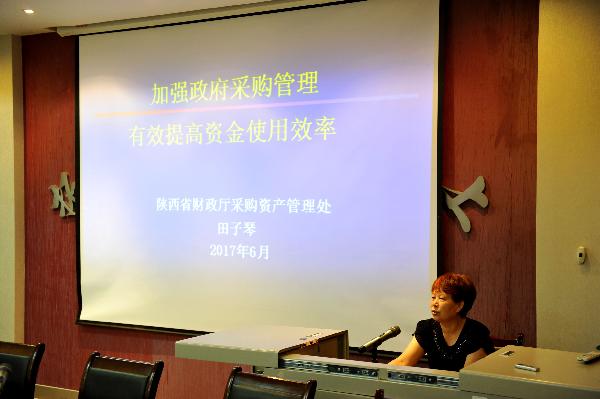 会上,陕西省财政厅政府采购与资产处调研员田子琴,首先从政府采购的概念和原则讲起,对财政性资金范围、政府采购目录及采购限额标准、相关的政策法规作了重点阐述。随后,对政府采购的采购方式、执行程序、遵循配置原则进行了细致讲解。最后,针对政府采购的信息公开、资产处置的信息安全做了简要说明。