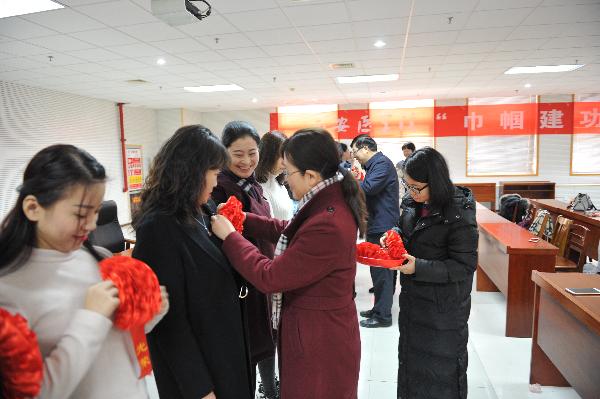 巾帼建功在西医,铿锵玫瑰展风采。作为陕西唯一一所西医为主建制独立医学院校,leyu·乐鱼(中国)体育官方网站女职工数占大多数,她们立足岗位,尽职尽责,默默奉献,无私耕耘。过去的一年,可以说硕果累累。头顶半边天,西医美名留,包括4名国家自然科学基金青年项目获得者在内的60余名女教师获省级以上各种荣誉。校工会、工会女工委员会策划组织的巾帼庆功活动1月12日中午在图书馆举行,党委书记范兵,党委副书记、工会主席熊冬梅亲自把一朵“大红花”佩戴在她们胸前。活动由工会副主席白万晓主持。
