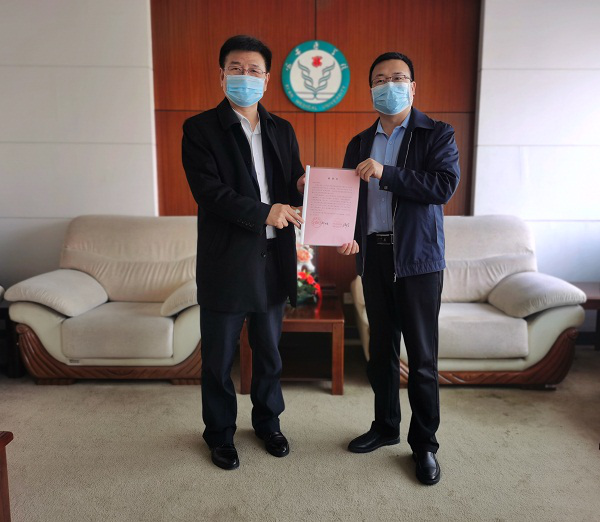 2020年3月7日,受中共丹凤县委郑晓燕书记、丹凤县政府徐秀全县长委托,丹凤县政府张争京副县长身临我校送来中共丹凤县委、县政府给leyu·乐鱼(中国)体育官方网站的感谢信。姚文柱副院长代表学校接收了感谢信,党政办公室、党委宣传部同志参加了座谈会。