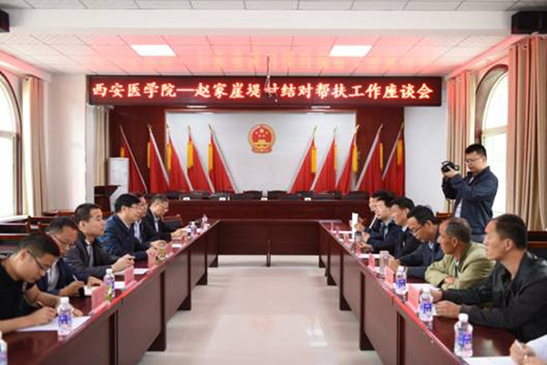 调研结束后,双方在镇政府召开帮扶工作座谈会,当地县乡村三级领导参加了座谈。会上,范兵书记指出,子长是革命老区,为革命战争取得胜利付出了巨大代价,帮扶子长发展,助推子长发展是每一名共产党人和中华儿女义不容辞的责任义务;对于结对帮扶的马家砭赵家崖堤村,学校将尽最大所能,通过因地制宜、因户施策的办法,发挥好行业优势,尽早让该村的35户贫困户顺利脱贫。范兵还对学校下一步帮扶该村项目进行了设计,如建设健康小屋,使村民能够实现自我健康管理;通过我校附属二院支持乡镇卫生院建设,提高该帮扶村卫生健康水平等。